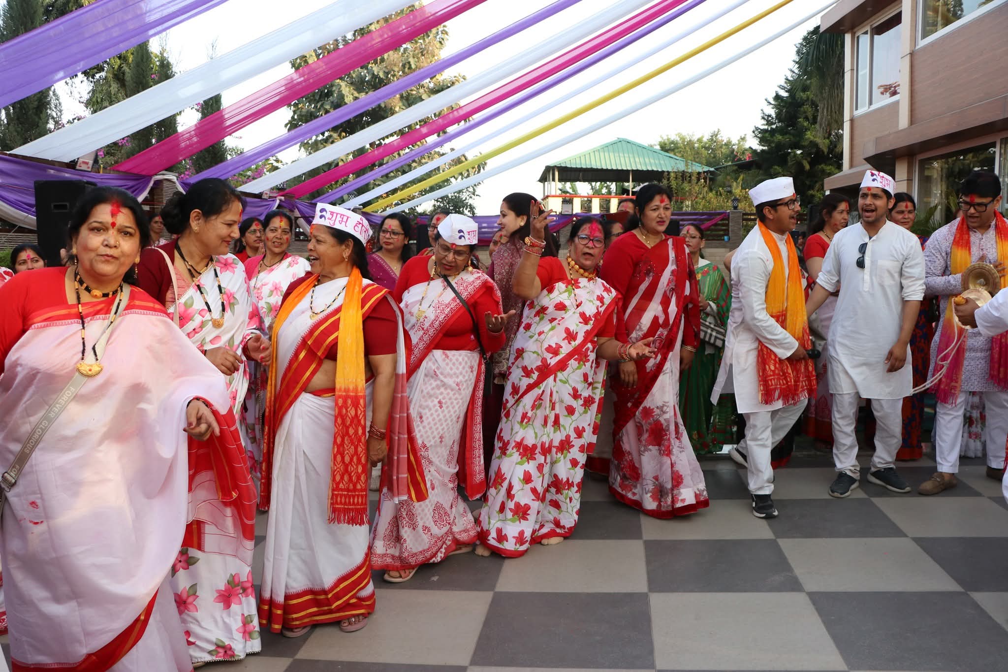 लोकगायिका उप्रेती सिस्टर्स, बीरू जोशी एवं अन्य कलाकारों की शानदार प्रस्तुतियों ने समां बांध दिया। पारंपरिक व्यंजनों—आलू के गुटके, भांग की चटनी और गुजिया—ने आयोजन को और भी यादगार बना दिया।
