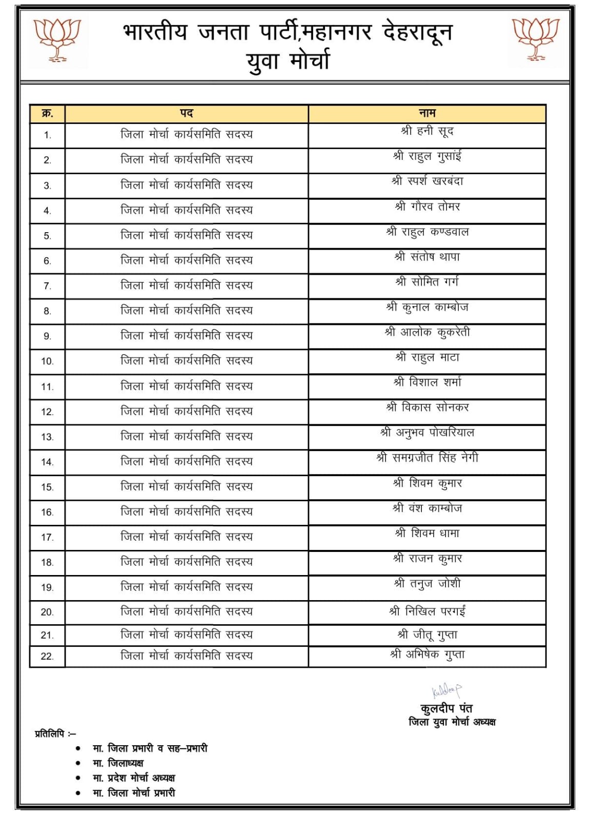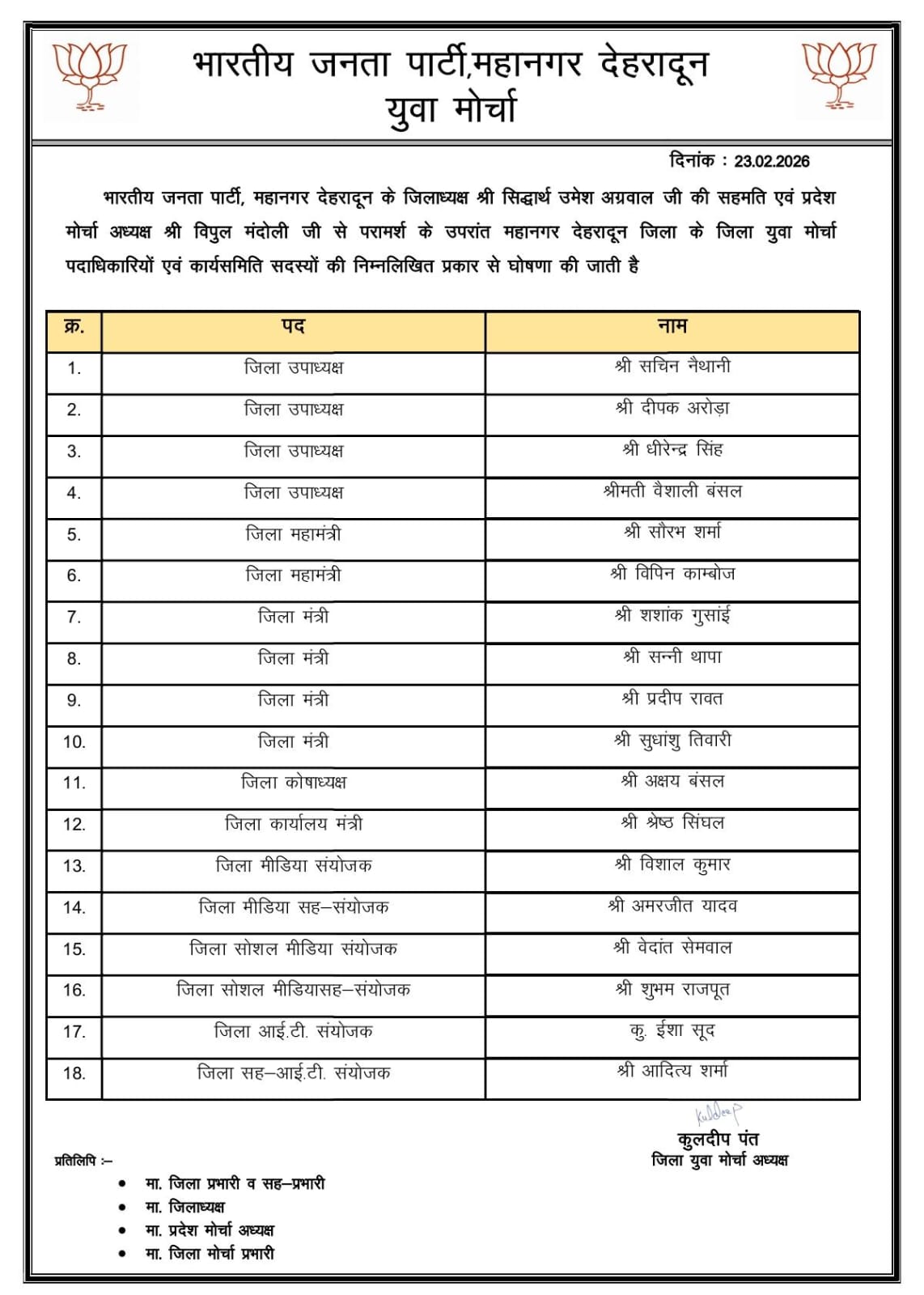 आलोक कुकरेती बने भाजपा महानगर देहरादून युवा मोर्चा के जिला कार्यसमिति सदस्य