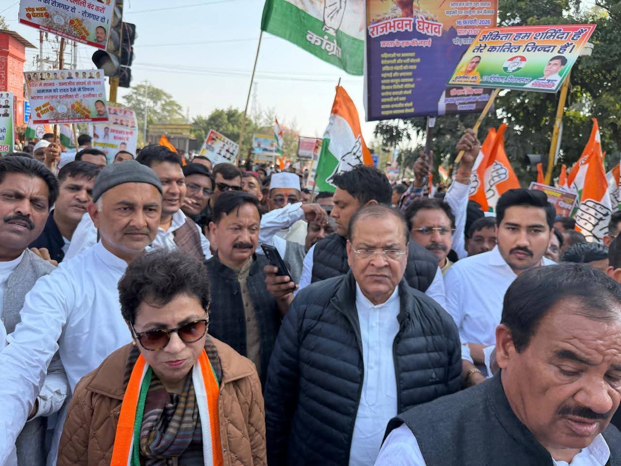 राजभवन कूच में कांग्रेस की प्रदेश प्रभारी कुमारी शैलजा, पूर्व मुख्यमंत्री हरीश रावत, कांग्रेस प्रदेश अध्यक्ष गणेश गोदियाल, पूर्व प्रदेश अध्यक्ष और चकराता विधायक प्रीतम सिंह, पूर्व प्रदेश अध्यक्ष करन माहरा विधायक, पूर्व कैबिनेट मंत्री और कांग्रेस के चुनाव प्रबंधन समिति के अध्यक्ष हरक सिंह रावत, नेता प्रतिपक्ष यशपाल आर्य, मुख्य प्रवक्ता गरिमा मेहरा दसौनी, प्रदेश महिला कांग्रेस की अध्यक्ष ज्योति रौतेला, कांग्रेस उपाध्यक्ष पूर्व सांसद महेंद्र पाल और कांग्रेस उपाध्यक्ष धीरेंद्र प्रताप रैली के अलावा पूर्व मंत्री, पूर्व विधायक, जिला व महानगर अध्यक्षों सहित पार्टी के अनेक वरिष्ठ पदाधिकारी और सैकड़ों कार्यकर्ता शामिल हुए। परेड मैदान में उमड़ी भीड़ और नारों की गूंज ने सरकार के खिलाफ कांग्रेस के तेवर स्पष्ट कर दिए।