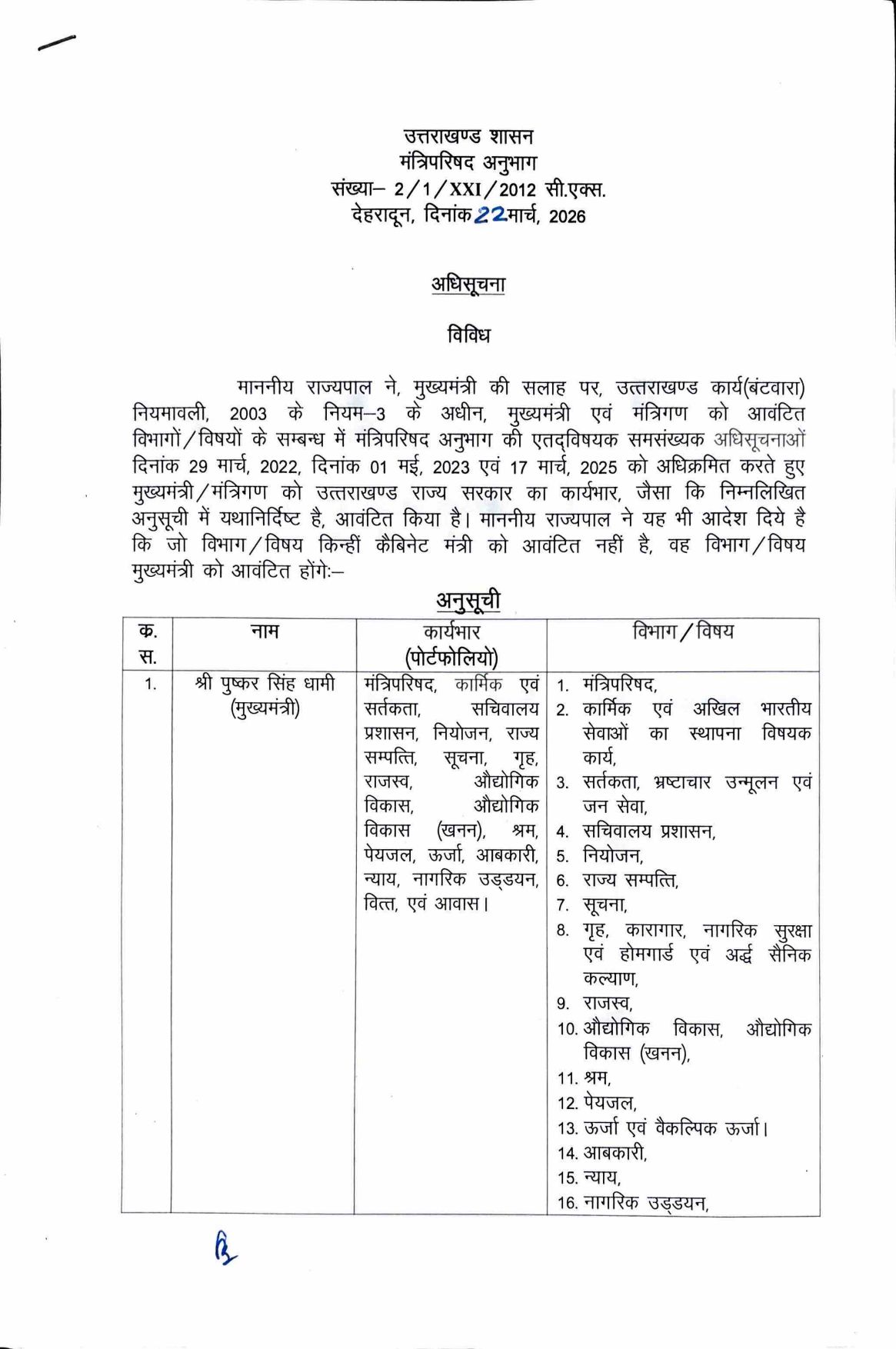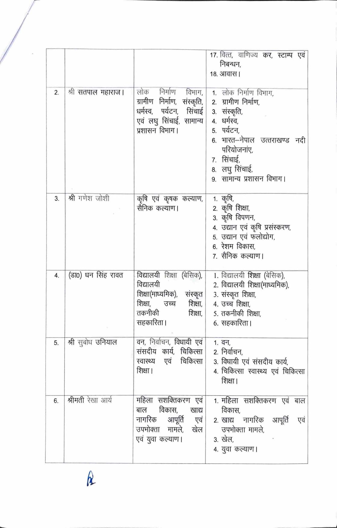 उत्तराखंड सरकार में पांचों नए मंत्रियों को सौंपे विभाग, देखें किसे क्या मिला