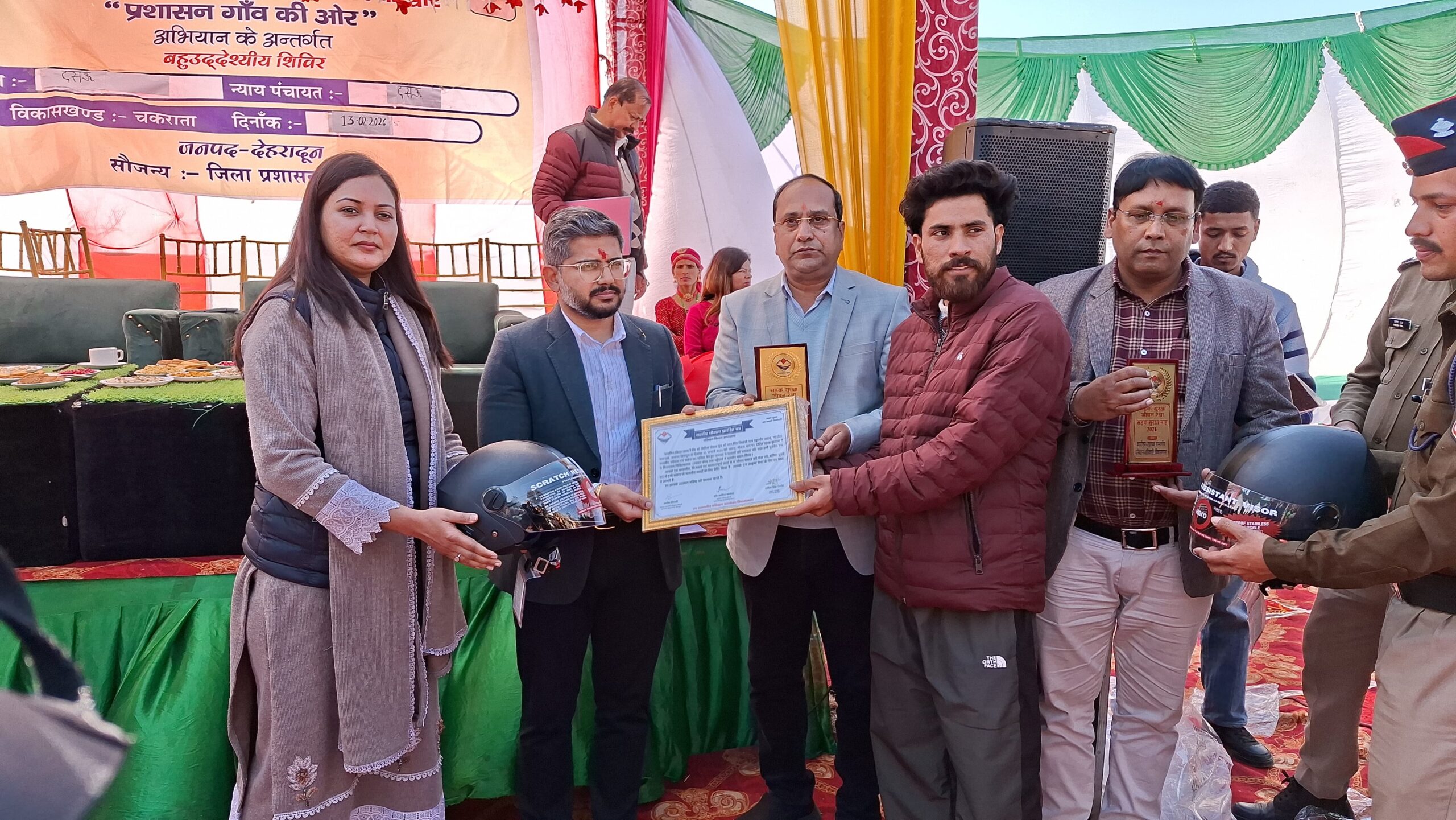“जन-जन की सरकार, जन-जन के द्वार” प्रशासन गांव की ओर अभियान के अंतर्गत शुक्रवार को विकासखंड चकराता के दूरस्थ न्याय पंचायत दसऊ में मुख्य विकास अधिकारी अभिनव शाह की अध्यक्षता में बहुउद्देशीय शिविर का आयोजन किया गया। इस दौरान विभिन्न विभागों के माध्यम से 735 से अधिक लोगों को जनकल्याणकारी योजनाओं का प्रत्यक्ष लाभ प्रदान किया। शिविर में नशामुक्त भारत अभियान के अंतर्गत सभी उपस्थितजनों को मादक पदार्थों से दूर रहने की शपथ दिलाई गई।