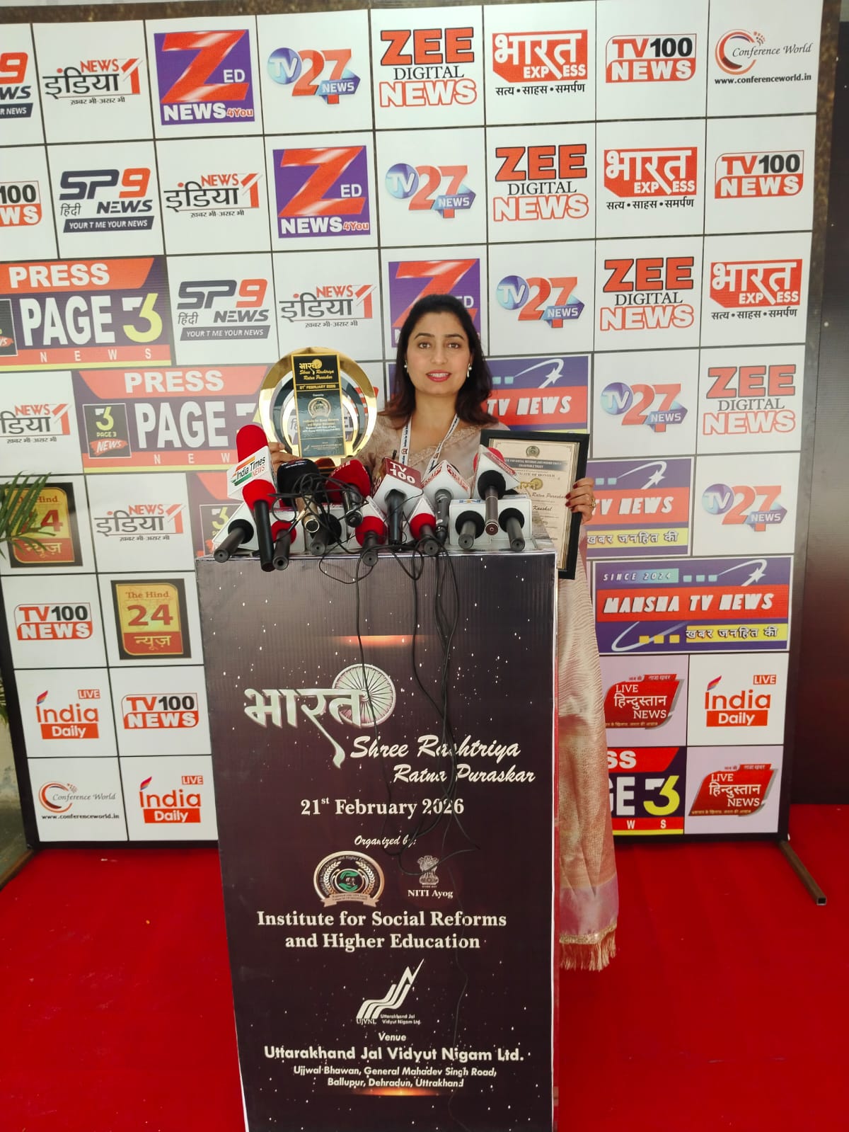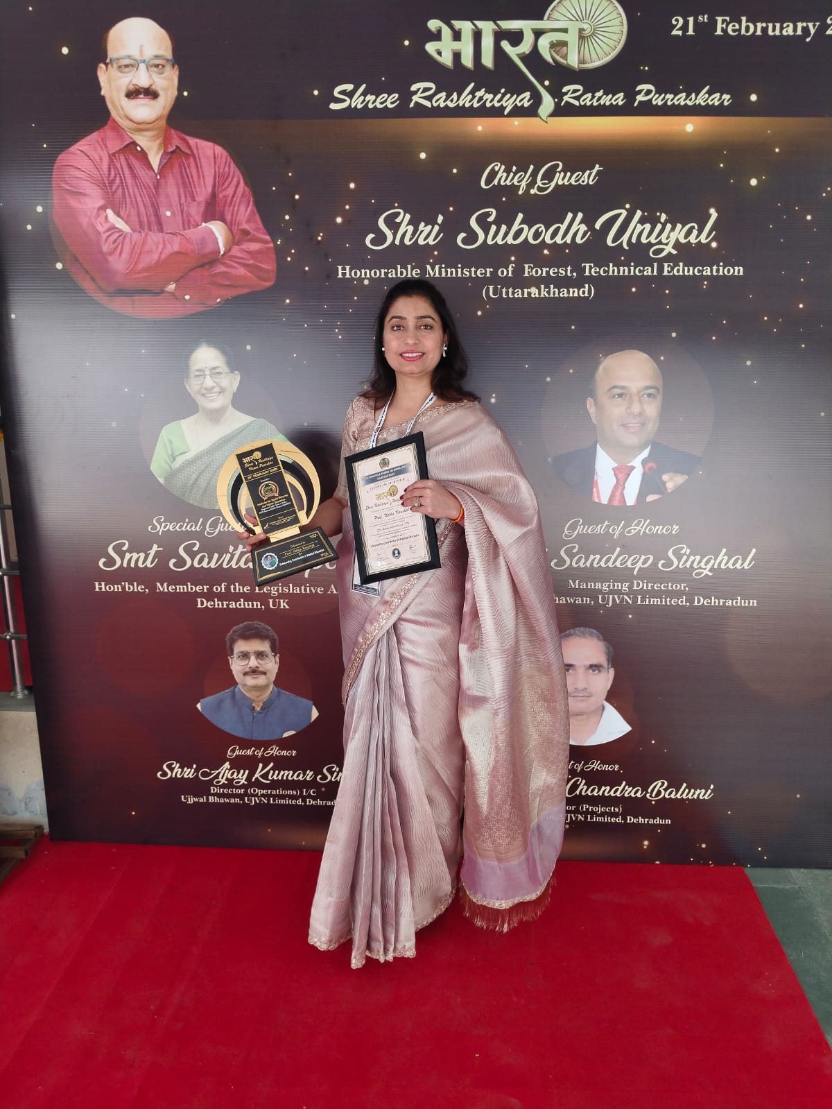 उत्तराखंड के शैक्षणिक परिदृश्य के लिए गौरव का क्षण तब बना जब प्रो. नितिका कौशल, प्रोफेसर एवं डीन (स्टूडेंट वेलफेयर), Ras Bihari Bose Subharti University को राष्ट्रीय स्तर पर प्रतिष्ठित ‘भारत श्री राष्ट्रीय रत्न पुरस्कार–2026’ से सम्मानित किया गया।