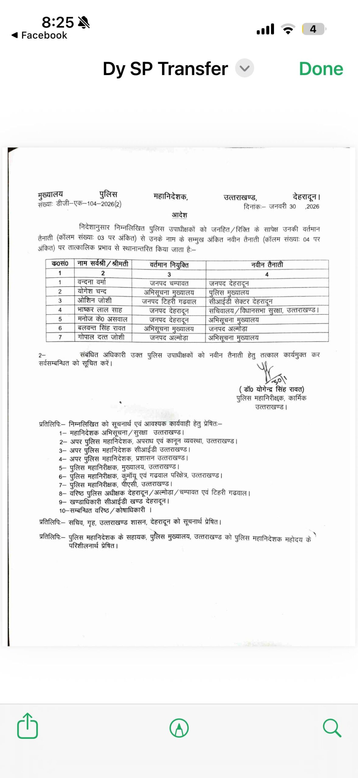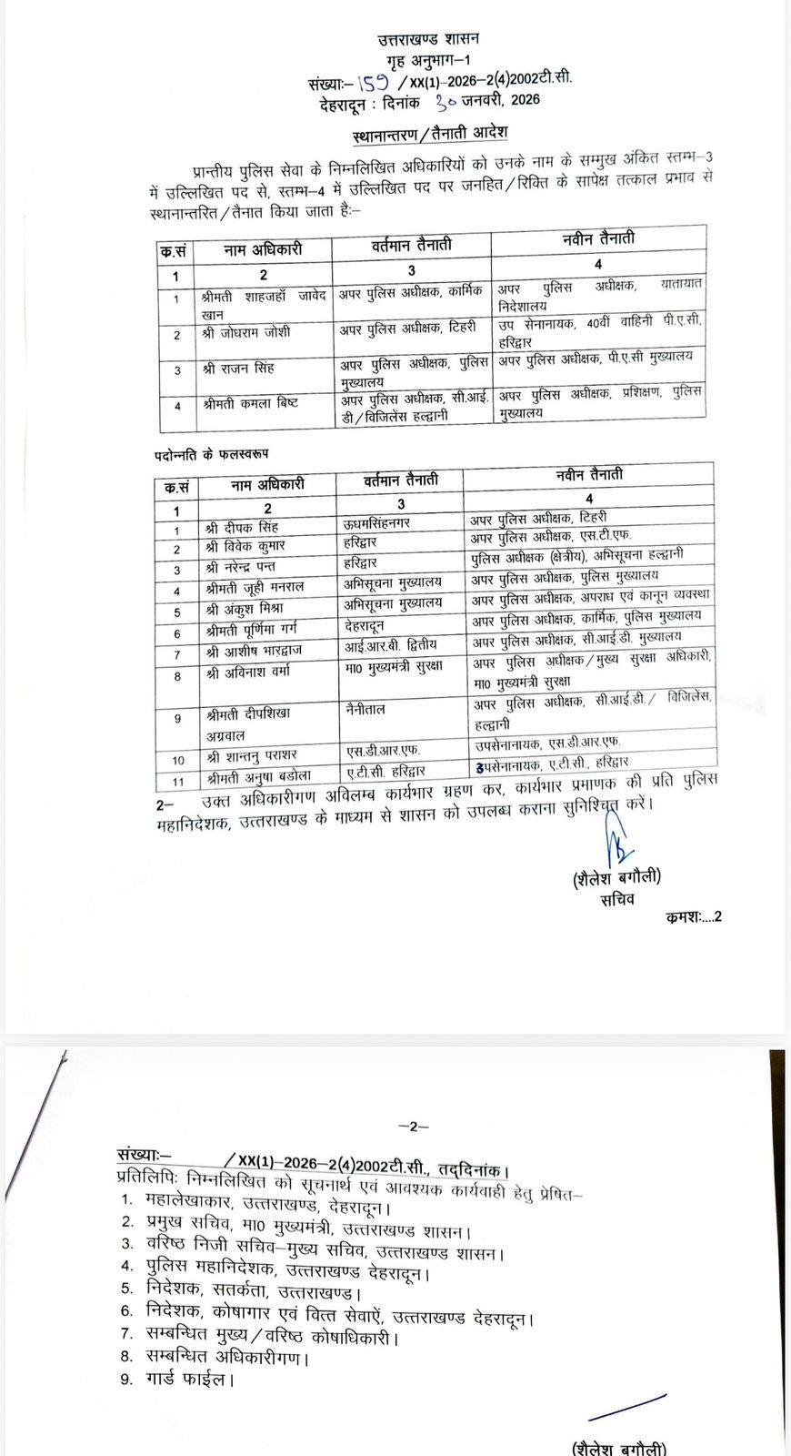 उत्तराखंड पुलिस में कई पुलिस अफसरों की पदोन्नति और स्थानांतरण