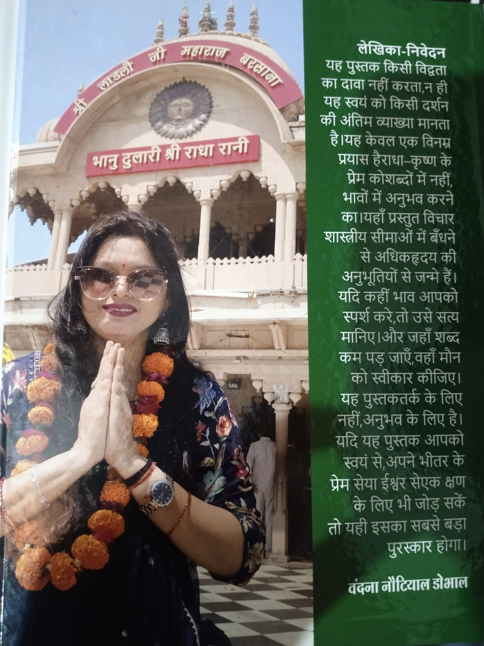 समर्पण और आभार जैसे छोटे-छोटे भाग भी पुस्तक के भाव को मजबूत करते हैं और यह स्पष्ट करते हैं कि लेखक का झुकाव व्यक्तिगत अनुभूति और भक्ति की ओर है, न कि केवल विचार प्रस्तुत करने की ओर।