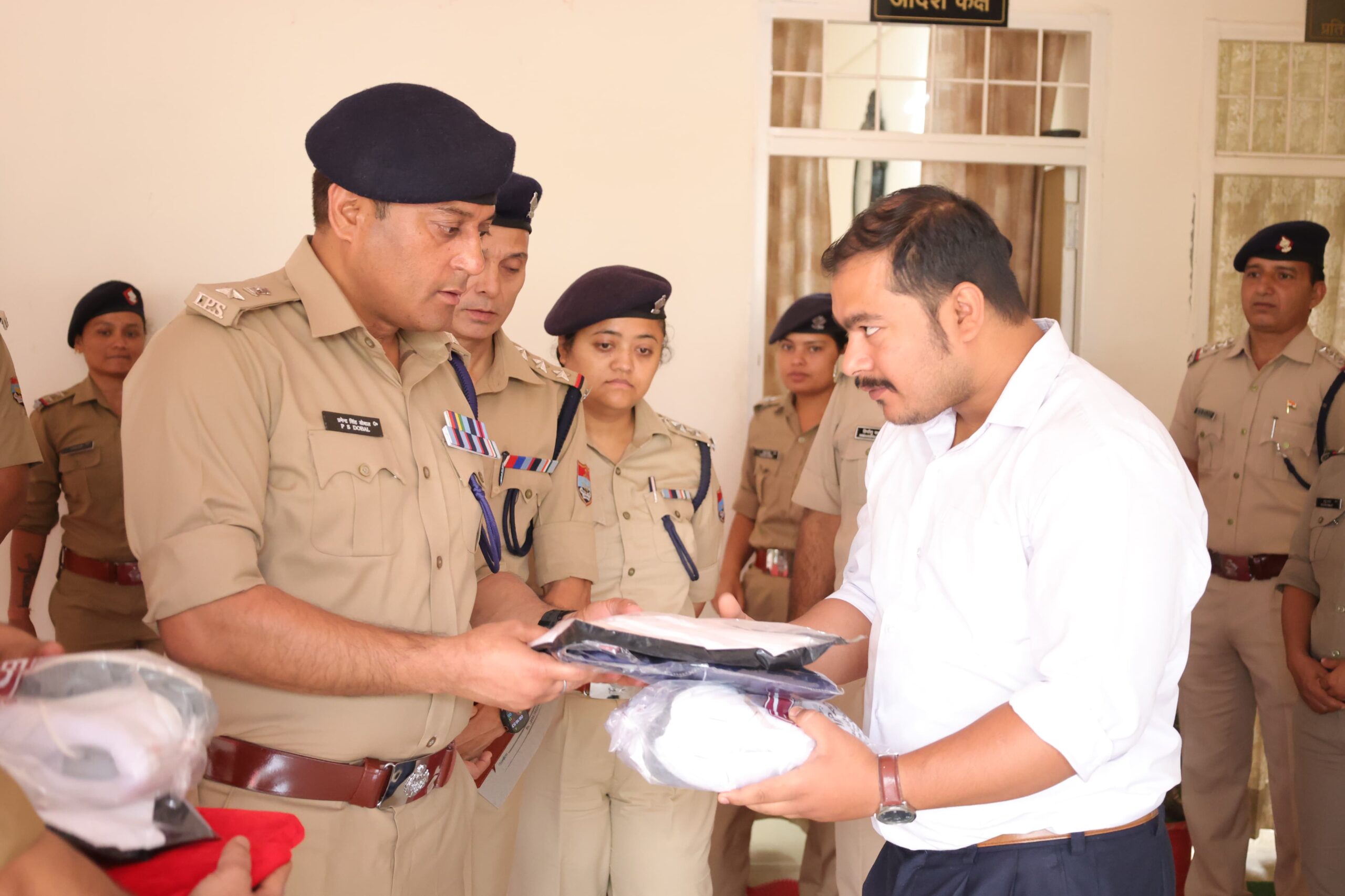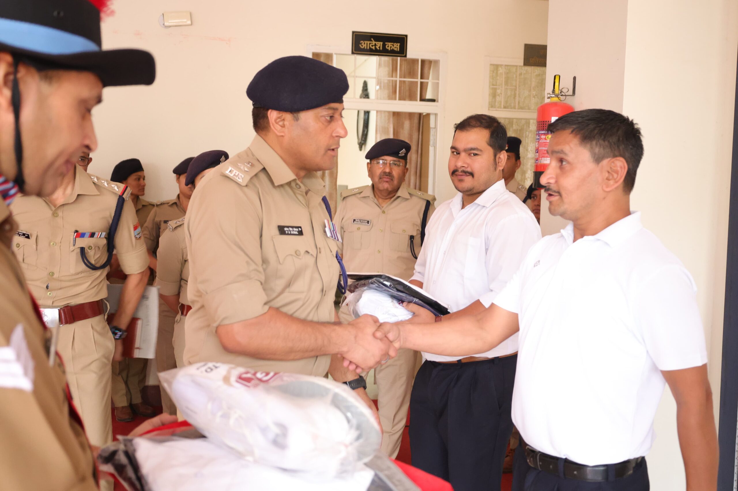 निरीक्षण के दौरान उत्कृष्ट कार्य करने वाले तीन पुलिस कर्मियों—राजेश जोशी, रमेश रावत और सूरज सिंह—को उत्साहवर्धन हेतु सम्मानित किया गया।