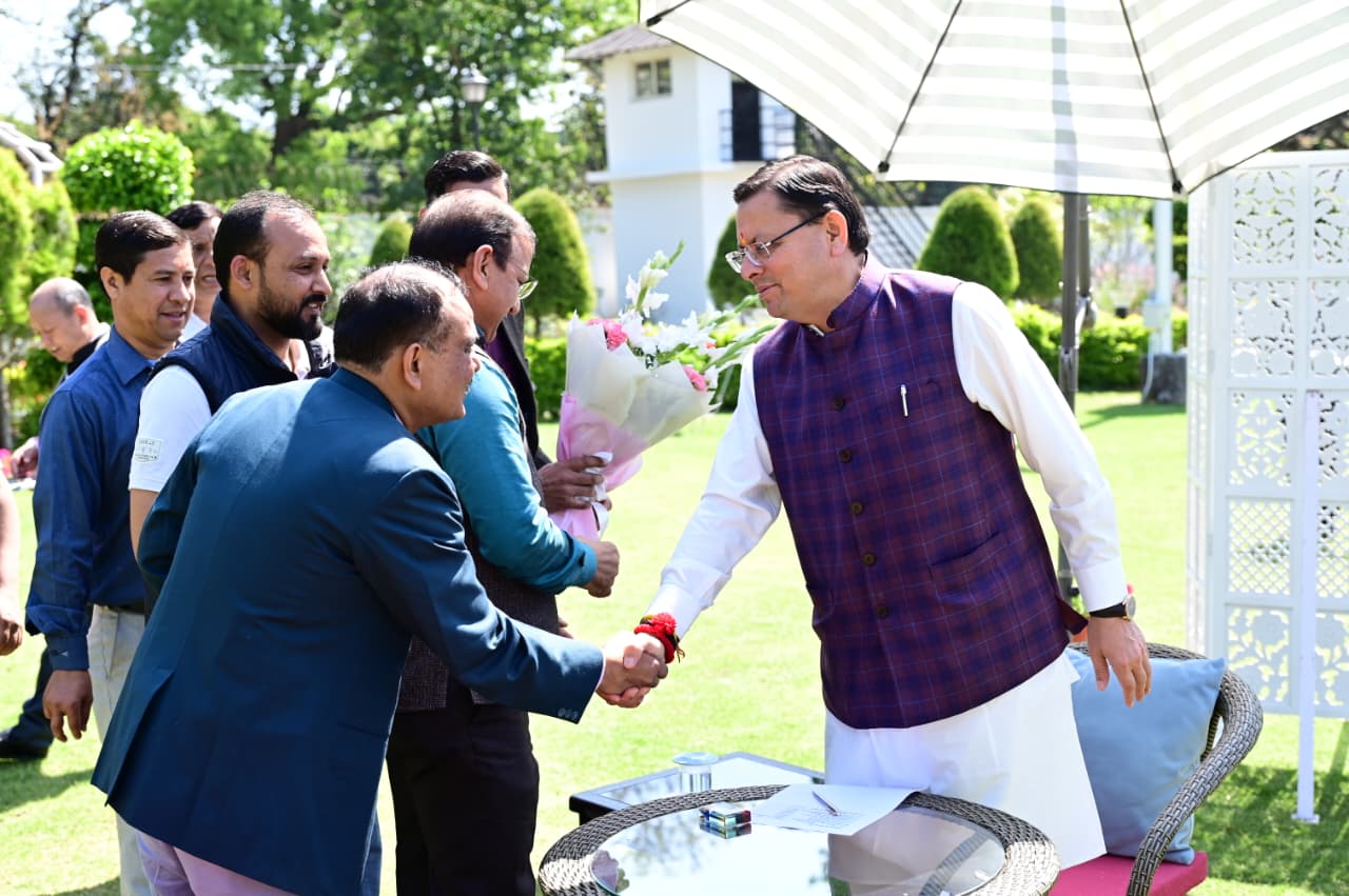 मोनाल एक्सप्रेस, देहरादून। उत्तरांचल प्रेस क्लब के अध्यक्ष अजय राणा के नेतृत्व में प्रेस क्लब पदाधिकारियों ने मुख्यमंत्री पुष्कर सिंह धामी से शिष्टाचार भेंट की। इस दौरान पत्रकारों के हितों और लंबे समय से लंबित प्रेस क्लब भवन निर्माण को लेकर विस्तार से चर्चा हुई।