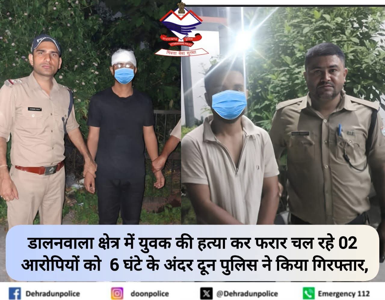 घटना की गंभीरता को देखते हुए एसएसपी देहरादून अजय सिंह ने तत्काल फरार आरोपियों की गिरफ्तारी के आदेश दिए। कोतवाली डालनवाला पुलिस ने तत्परता दिखाते हुए महज 6 घंटे के भीतर दोनों आरोपियों—