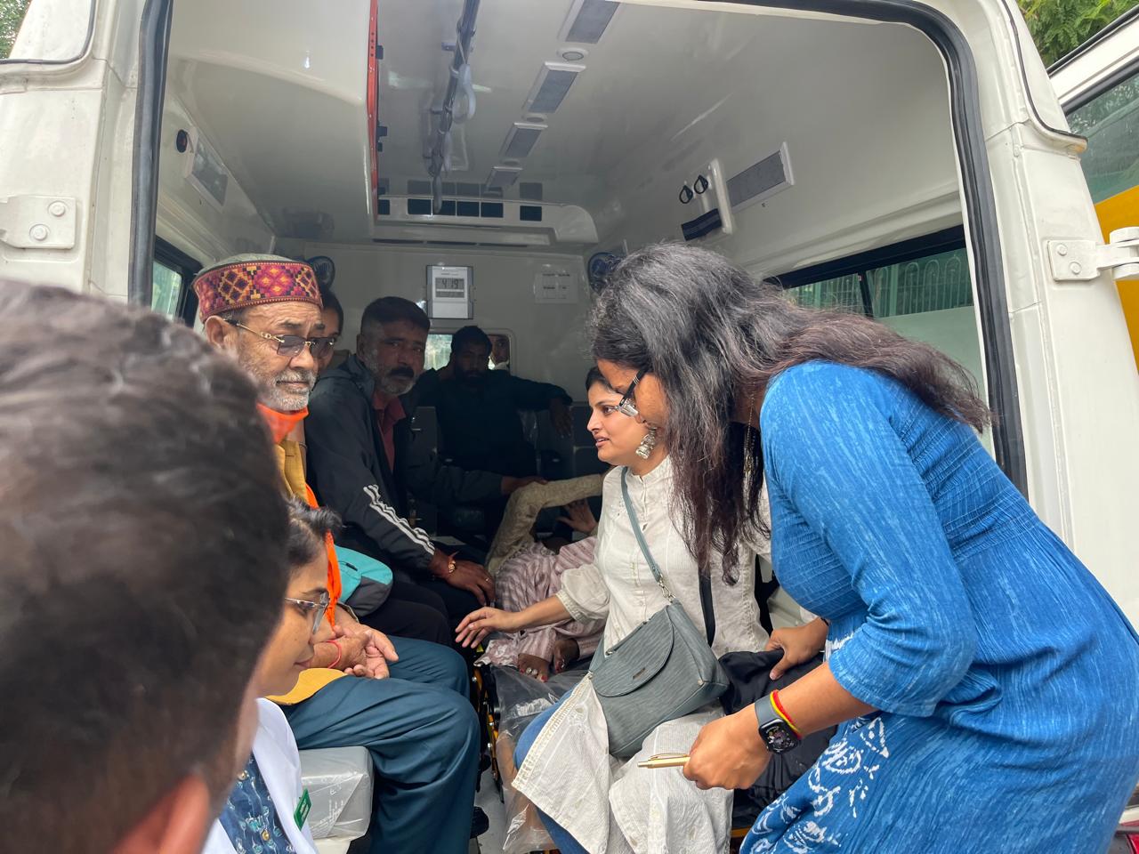 देहरादून, 17 सितम्बर: अतिवृष्टि के कारण मसूरी-देहरादून रोड का एक हिस्सा धंस जाने से मसूरी का जिला मुख्यालय से संपर्क टूट गया। इस बीच मसूरी अस्पताल में डायलिसिस और अन्य गंभीर बीमारियों से जूझ रहे मरीजों की जान पर संकट आ गया। हालात की गंभीरता देखते हुए जिलाधिकारी ने खुद मोर्चा संभाला और 13 गंभीर मरीजों को सुरक्षित देहरादून पहुंचाया।