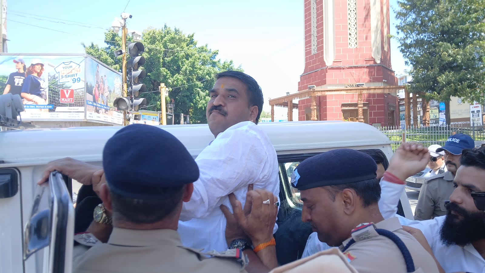 आक्रोशित कार्यकर्ताओं ने “प्रधानमंत्री गो बैक” के नारे लगाते हुए जोरदार विरोध प्रदर्शन किया। स्थिति को नियंत्रित करने के लिए पुलिस ने प्रदेश अध्यक्ष ज्योति रौतेला सहित सभी प्रदर्शनकारियों को हिरासत में लेकर पुलिस लाइन भेज दिया। इसी क्रम में कांग्रेस नेता संजय कनौजिया (कद्दू भाई), मोहन काला और नितिन चंचल को भी गिरफ्तार किए जाने की जानकारी सामने आई है।